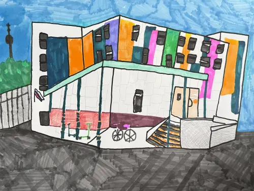 Я люблю приходить в садик и рисовать там, поэтому сегодня я решил нарисовать именного его. Очень хочу чтобы все кто там учится узнал его! Адрес садика: Шереметьевская, 37, название «Академия детства»