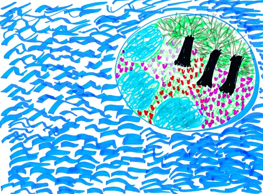 В парке «Царицыно» есть удивительные острова, которые были созданы не природой, а человеком. Я нарисовала один из островов Царицыно, который расположен в Среднем Царицынском пруду.
