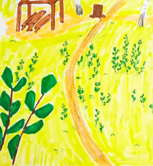 Рисунок посвящён экологической доминанте районов Чертаново, Ясенево и Бутово - Битцевскому лесу.