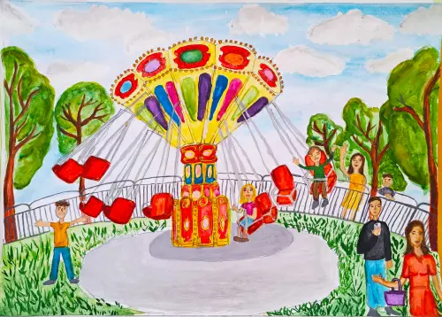 Мы всей семьей в любую погоду ходим в парк Северное Тушино недалеко от нашего дома. Очень любим кататься с сестрами на карусели. Нашу любимую карусель я нарисовала на конкурс. А родители ожидают нас за заграждением. Парк мы очень любим. Он постоянно обновляется. В нем можно отдохнуть, заняться спортом и развлечься.