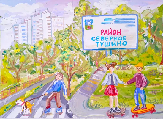 Мы живем неподалеку от парка Северное Тушино, где можно отдохнуть и развлечься. Мы берем свою собаку и гуляем там, катаемся на скейте, занимаемся спортрм на турниках. Мы - спортивная семья. Все Северное Тушино покрыто зелеными насаждениями. Я люблю свой район.