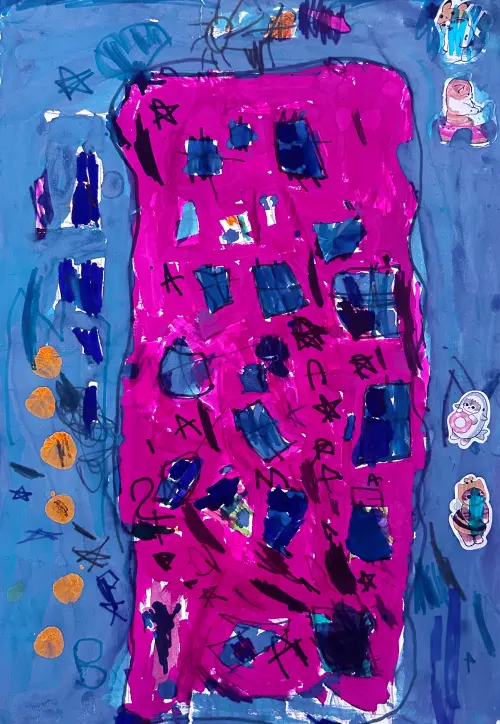 Я люблю мой дом! Тут моя любимая площадка с горкой. Я гуляю с мамой и папой в парке и кормлю уточек. А еще тут вкусное мороженое в магазине! Я хочу нарисовать, как тут красиво и весело.