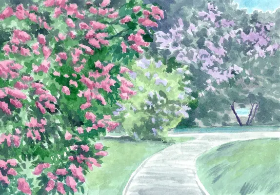 Район Измайлово славится разнообразием сирени. Ее можно встретить везде: во дворах, парках, скверах. Здесь находится знаменитый "Сиреневый сад", в котором представлено более 50 сортов сирени. Благодаря саженцам сирени из этого сада, появилась улица "Сиреневый бульвар". Я, почти, каждый день хожу по бульвару, и невольно любуюсь огромными кустами-старожилами и совсем маленькими кустиками сирени. Особенно прекрасен бульвар во время цветения, прекрасный аромат разносится на всю округу. Я, попыталась передать в своей работе всю красоту цветущей сирени, жаль только, что нельзя передать еще и аромат.