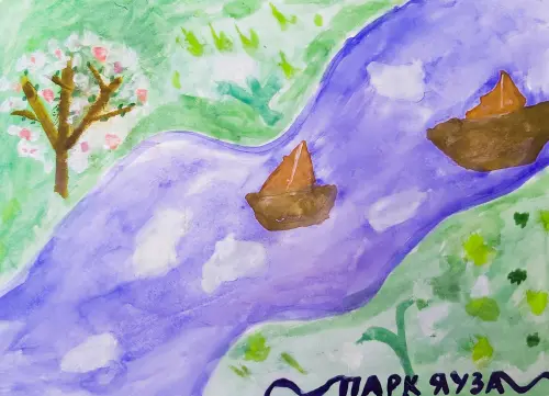 Весна - это время пробуждения природы! Начинают распускаться почки на деревьях, цветут яблони, повсюду цветы мать-и-мачеха. Река освобождается от льда, и прозрачные льдинки плывут по Яузе. Так интересно пускать кораблики в это время и смотреть, как их уносит река!