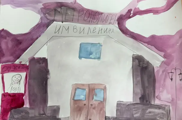 На картине я изобразила вход на станцию метро «Сокольники». И как я вижу новую площадь, и как бы мне хотелось, чтобы возле метро «Сокольники» продавали мороженое.