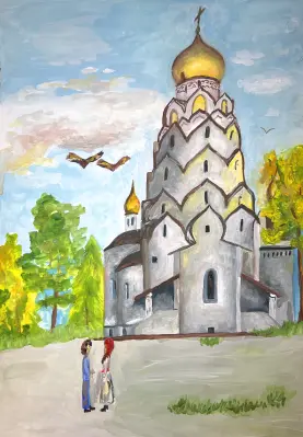 Я живу в Строгино. Одно из самых красивый зданий в моём районе, по моему мнению, это Храм Новомучеников и Исповедников Российских. Проходя мимо, всегда любуюсь ярким блеском золотых куполов и его красивой архитектурой.