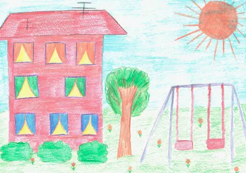 Я живу в большом красивом дворе. Тут много деревьев, бабушки сажают цветы около дома. Еще у нас есть дворник. Все соседи здороваются и угощают друг друга конфетами. У нас большой дружный двор.