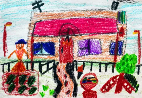 Свою работу я нарисовала восковыми мелками. Это мой любимый детский сад. У нас на участке есть небольшой огород. Мы там выращиваем капусту и морковь. И дружим всей группой