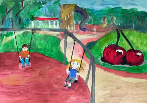 Я живу в районе Коптево, моё любимое место для прогулок - Вишнёвый сад. В прошлом году закончили основные работы по его реконструкции, мне очень нравится, как он изменился. Больше всего в этом парке я люблю бегать, скатываться с огромной горки-трубы, строить песочные замки, играть в футбол, качаться на качелях.
