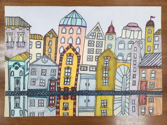 Обожаю свой город и дождливую погоду, в своей графической работе решила соединить две своих любвиОбожаю свой город Москву и дождливую погоду, в своей графической работе решила соединить две своих любви. Картина похожа на зеркало, в котором отражается свежий город после дождя