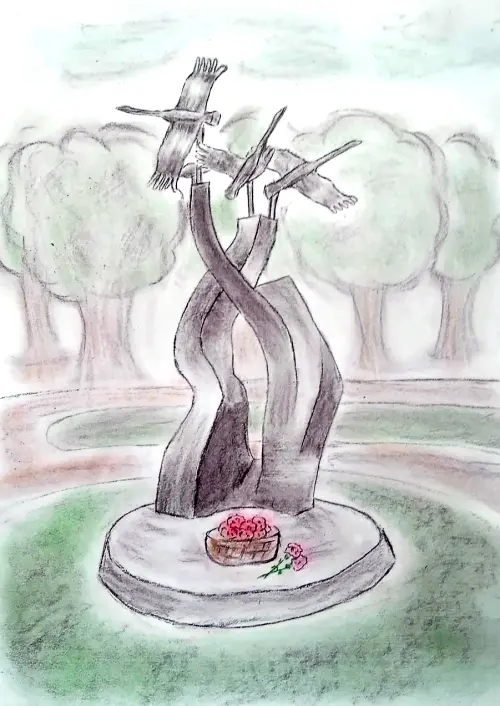 Скульптура "Журавли", установленная в сквере района "Отрадное". Работа выполнена углём и пастелью с натуры. Меня вдохновила песня "Журавли", которую олицетворяет эта скульптура.