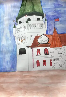 На своем рисунке я решила изобразить одну из достопримечательностей города Москвы - Измайловский Кремль. Мне очень полюбился этот красочный и сказочный уголок Москвы, в нем чувствуешь себя по настоящему сказочным героем. Также там находится очень много различных музеев и различных развлекательных программ.