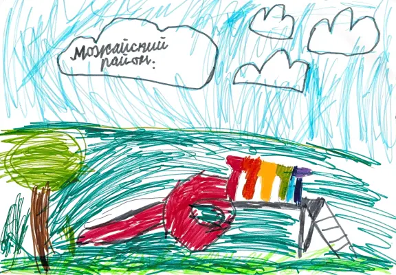 Добрый день. Я нарисовал рисунок, на котором нарисована площадка детская. Наш Можайский район очень чудесный, красивый и современный. Я очень люблю свой район.