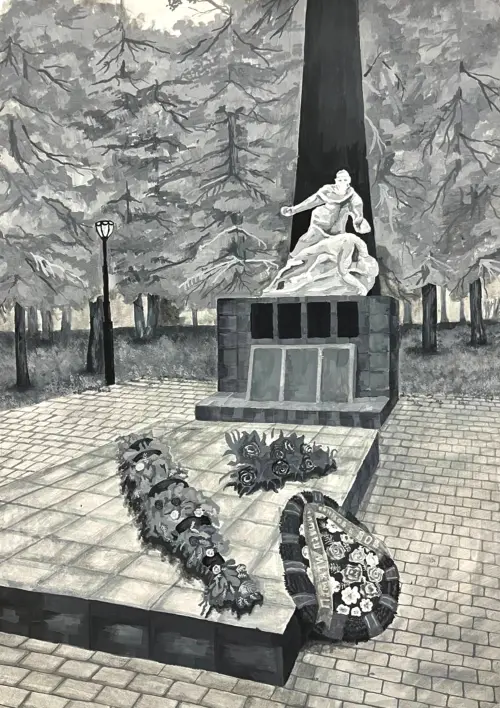 Моя работа посвящена односельчанам, защищавшим Родину в годы ВОВ. Памятник находится в посёлке Рогово, где я проживаю. Я хочу, чтобы о роговчанах, защищавших Москву, помнили всегда!