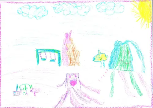 У нас рядом с домом есть лес. В нем расположена поляна, на которой есть замечательная детская площадка. Мы с родителями часто ходим туда гулять. На поляне есть домик-кормушка для белок. Туда все желающие кладут орехи и семечки для белок.