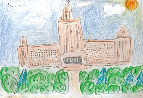 Я с родителями часто гуляю на Воробьёвых горах. Главной достопримечательностью является МГУ им. М.В. Ломоносова. Моя большая мечта: вырасти и поступить в этот университет.