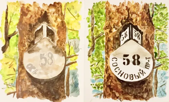 Возвращаясь из поликлиники по Тимуровской улице, недалеко от перекрестка с Бакинской на одной из парковых сосен я заметила интересный артефакт былых времен - домовую табличку, крепко вросшую в дерево, с несуществующим названием улицы. Поискав в интернете информацию о том, что это могло быть, я выяснила, что надпись на табличке "Сосновый пр-т 58" объясняется довольно просто: раньше Тимуровская улица называлась Сосновый проспект. Там же мне удалось найти фотографию таблички раньше: до того, как небезразличные жители района привели в порядок эту табличку. Выглядела она довольно печально: покрытая ржавчиной, с сохранившейся надписью "Соснов.. 58". Узнав из блога о том, что жители нашего района бескорыстно в свои выходные восстановили табличку, максимально приблизив ее к изначальному варианту, мне захотелось, чтобы эта история вышла за рамки моего района.