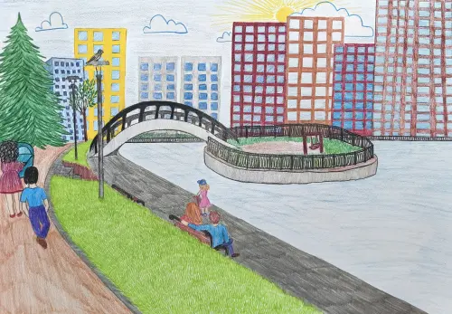 На рисунке (на листе А3) представлен Михайловский пруд - прекрасное место для отдыха, прогулок и совместных времяпровождений. Летом здесь работает прокат лодок и катамаранов, детских машинок. В сильную жару можно встретить смельчаков, купающихся в пруду. Некоторые ловят рыбу, другие кормят уток. Мы с семьёй очень любим это место, хотя живём в соседнем районе