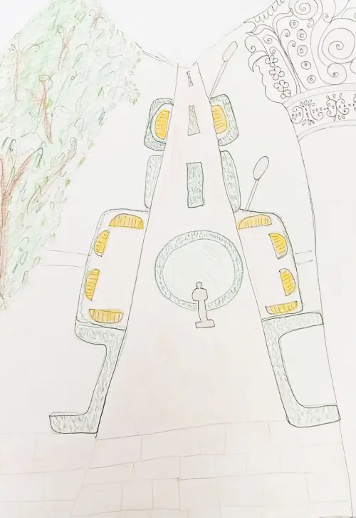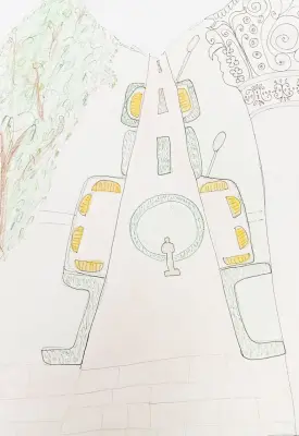 В поселке Северный есть красивая аллея по ул. 3-я северная линия. Мне нравится там гулять, играть и отдыхать там на скамейках. Я нарисовал эту аллею, деревья, скамейки.