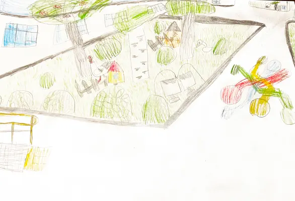 Я нарисовала детский сад, потому что здесь мои любимые друзья и воспитатели. У нас очень красивый уголок, есть курочка и мельница, здесь мы наблюдаем за природой!