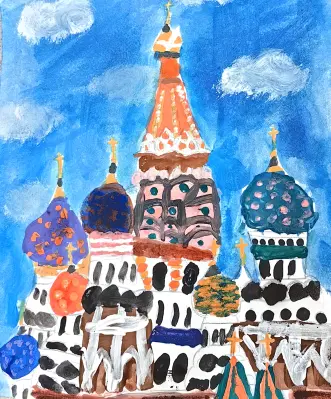 Мне очень нравится Храм Василия Блаженного за его необычные цветные купола! Когда мы бываем рядом с Красной площадью с семьёй, я всегда вижу его. А ещё недавно мы катались на речном трамвае, и с реки вид на храм был ещё красивее!