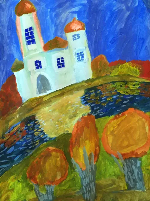 Прекрасная станковая работа, выполненная в технике гуашь формат А2. Удивительно красивое сочетание кобальта синего неба и золотисто-жёлтых куполов храма. Вдохновение для работы послужил храм в усадьбе Кузьминки.