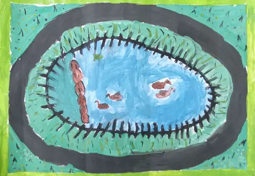 В нашем пруд живут рыбы, прилетают утки, живут лягушкиВ нашем пруд живут рыбы, прилетают утки, живут лягушки.Он обнесен забором и растут камыши водоросли.Возле пруда есть школа и площадке и жилые домаВ нашем пруд живут рыбы, прилетают утки, живут лягушки.Он обнесен забором и растут камыши водоросли.Возле пруда есть школа и площадке и жилые дома, его читут каждый месяц, ещё возле него есть поликленика