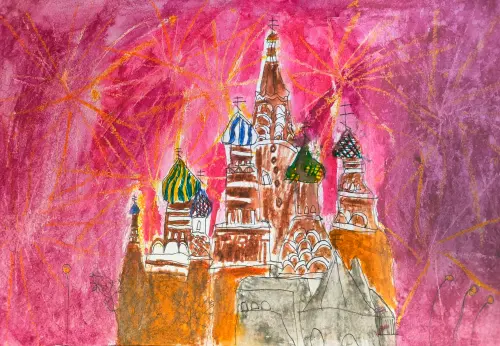 Я хожу на кружок рисования. У меня прекрасная учительница, которая многому нас учит. На уроках мы часто рисуем наш город. Я очень люблю День Победы и собор Василия Блаженного.