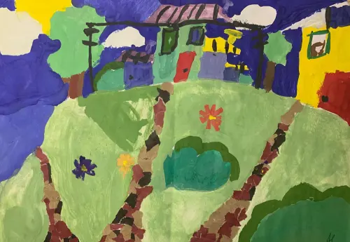 Вот расцвели цветы с приходом лета, зазеленела травка и деревья покрылись листьями, так приятно выходить на улицу и бродить по свеже-выложенным брусчаткой дорожкам.