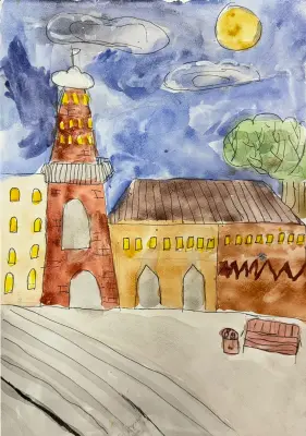 Моя работа посвящена пожарной каланче – символу района Сокольники, который я очень люблю. Это одна из моих любимых достопримечательностей Восточного округа.