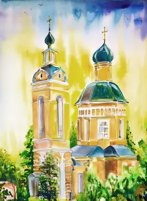 Работа выполнена в техние «живопись» (акварель). Храм является культурным наследием и находится в деревне Чернево.