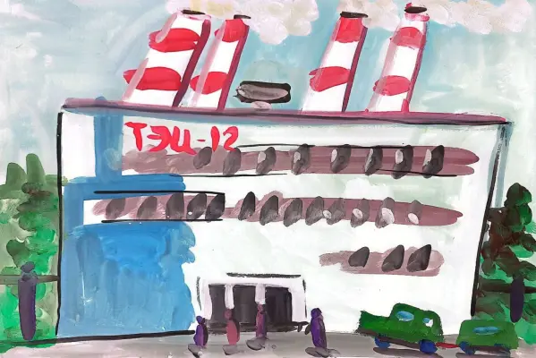 Для конкурса Никита выбрал тепловую электростанцию, которая вырабатывает электроэнергию и теплоту (в виде пара и горячей воды), в том числе для обеспечения горячего водоснабжения и отопления всех домов и строений в районе.
