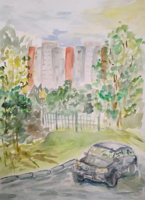 Работа с летнего пленэра в этом году в районе моей художественной школы им. Козловского в моём районе Крылатское. Мне очень нравились эти летние занятия.