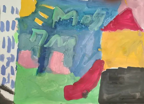 Мой двор полон ярких красок! В своей работе я изобразила широкими мазками кисти мою любимую площадку во дворе: домик, качели и горку. Мне хотелось передать разнообразие цветов, которые радуют каждый раз, когда я выхожу из дома!
