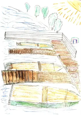 Недавно в нашем парке Пыхтино открылась лодочная станция и мне так она понравилась, что я решил ее нарисовать.Я очень люблю гулять в парке Пыхтино, который находится недалеко от моего дома. Недавно в этом парке открылась лодочная станция и мне так она понравилась, что я решил ее нарисовать.