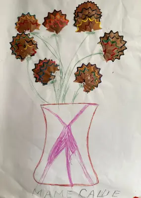 я нарисовала вазу с цветами для моей любимой мамы Саши. она у меня самая красивая и мы с ней постоянно гуляем в нашем дворе и она меня катает на качелях в нашем красивом дворе