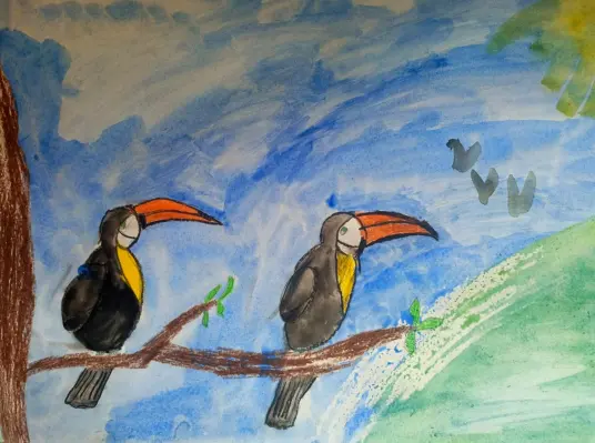 Совсем недавно я делал уроки, и моему взгляду попались необычные птицы, которые сидели на ветке за моим окном. Я так и не понял, как они называются и кто это, но они были очень красивые и их было две.