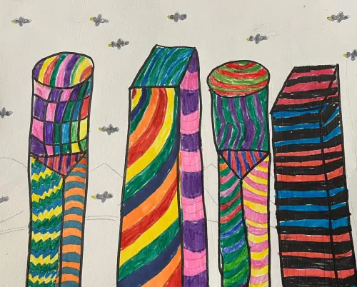 Мой любимый район Арбат — яркий и разнообразный. Рисунок выполнен карандашом и фломастерами.