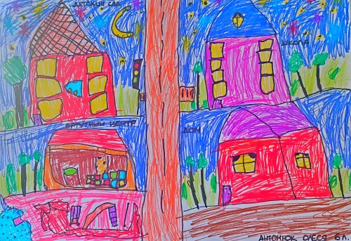 Очень люблю рисовать, захотела поучаствовать в конкурсе потому что брат тоже участвует.Очень люблю рисовать, захотела поучаствовать в конкурсе потому что мой брат тоже участвует. Нарисовала наш дом, детский сад, школу и батутный центр. А сделать подписи помогла мама.