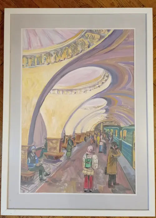 Я живу на станции метро «Войковская», поэтому, м " Сокол" проезжаю очень часто. С удовольствием рисовала эту картину, мне очень нравится эта станция с красивой архитектурой и богатой историей. Сначала я сделала несколько набросков с натуры, потом дома по ним нарисовала гуашью большую работу на листе а2