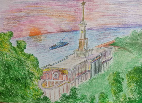 В нашем районе находится Северный Речной вокзал, где мы часто гуляем с родителями. Здание вокзала напоминает корабль, а башня — матчу. Я мечтаю купить билет на огромный теплоход и отправиться в путешествие.