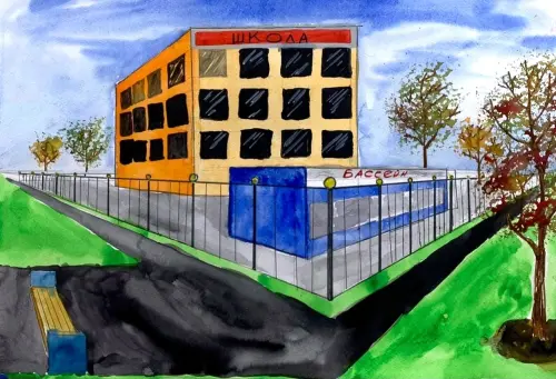 Недавно возле нашего дома построили новую школу, в которую я буду ходить учиться. Мне она очень нравится — в ней красиво и светло, а главное — есть большой бассейн.