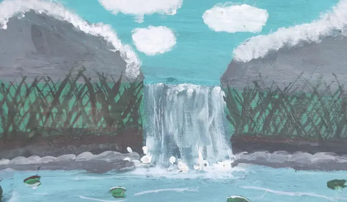 В своём сне я видела такой водопад с красивыми лилиями в воде. Мне очень-очень хочется увидеть в своём любимом районе такую красоту!