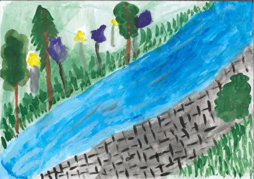 Речка там где я живу, люблю гулять с мамой и папой. Здесь очень красиво. Много летом разных цветов растет. Любим с мамой собирать одуванчики и плести из них венки, а потом опускать в воду и смотреть как наши веночки уплывают вдаль.