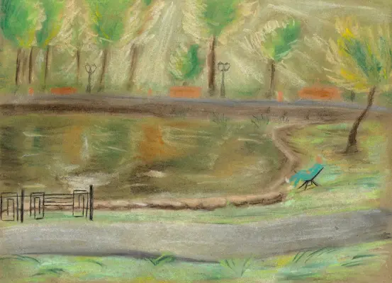 Неподалёку от нашего дома есть замечательное место, где я часто люблю бывать, особенно летом. Вдалеке от шумной трассы в окружении кустарников спрятался маленький пруд. Любимое место для прогулки с собакой. Здесь царит умиротворённая атмосфера, позволяющая забыть о суете повседневности. У пруда часто собираются рыбаки, обмениваясь рыболовными хитростями и историями. Под старой сосной расположена небольшая церковь, в которой иногда служат открытые богослужения. Это место наполнено спокойствием и умиротворением, словно ограда от суеты мира за его пределами.