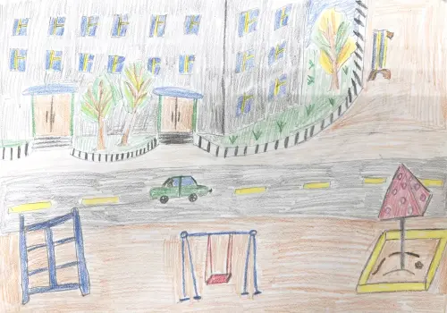 Моя детская площадка, она очень красивая. На ней много детей. Мы с мамой часто на ней гуляем. Я ее нарисовал и хотел чтоб ее увидели, что она очень красивая.