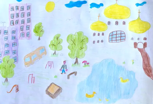 Я люблю свой район Коптево. Здесь я проживаю с самого рождения. Рисуя рисунок, я так вижу свой район: благоустроенный, чистый, красивый, ухоженный. И я хочу, чтобы мой район становился с годами лучше!