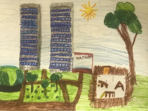 Для участия в конкурсе «Мой район. Мой двор» ученица ГБОУ ДО ЦРТДЮ «Гермес» Комякова Анастасия Антоновна нарисовала работу под названием «Мой уютный дом». Работа была выполнена на формате А3 в смешанной технике.
