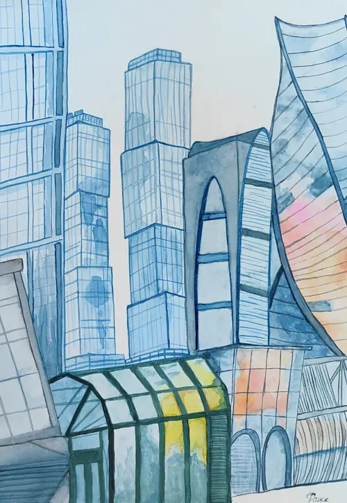 На рисунке отображается ритм Москвы, новое, совершенное, технологичное.