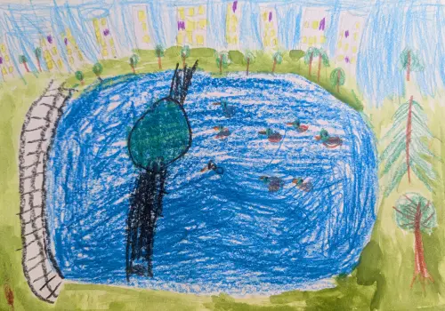 Городской уютный дворик, в котором расположен пруд. В пруду есть жители — это утки, за ними так забавно наблюдать. Прекрасное место для прогулок и отдыха.Городской уютный дворик, в котором расположен пруд. В пруду есть жители — это утки, за ними так забавно наблюдать. Прекрасное место для прогулок и отдыха.